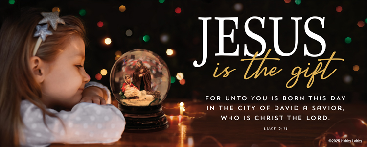 Hobby Lobby’s Christmas message features the words “Jesus is the gift” with a scripture from Luke 2:11, “For unto you is born this day in the City of David a Savior, who is Christ the Lord.”